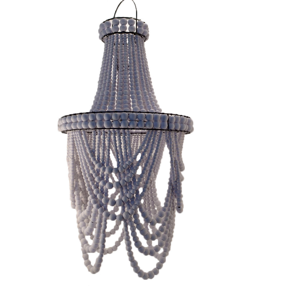 Price excludes GST Dimensions in cm: 40 x 76 Colour: White Material: Wood Bead/Metal (no electricals)