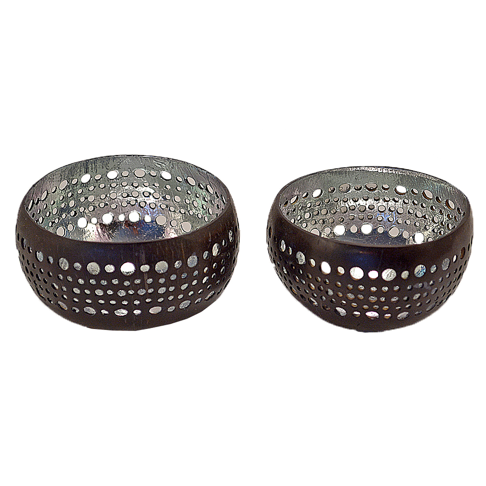Price excludes GST Colour: Black/Silver Material: Coconut Size: 5x10x10 (approx) Set of 2