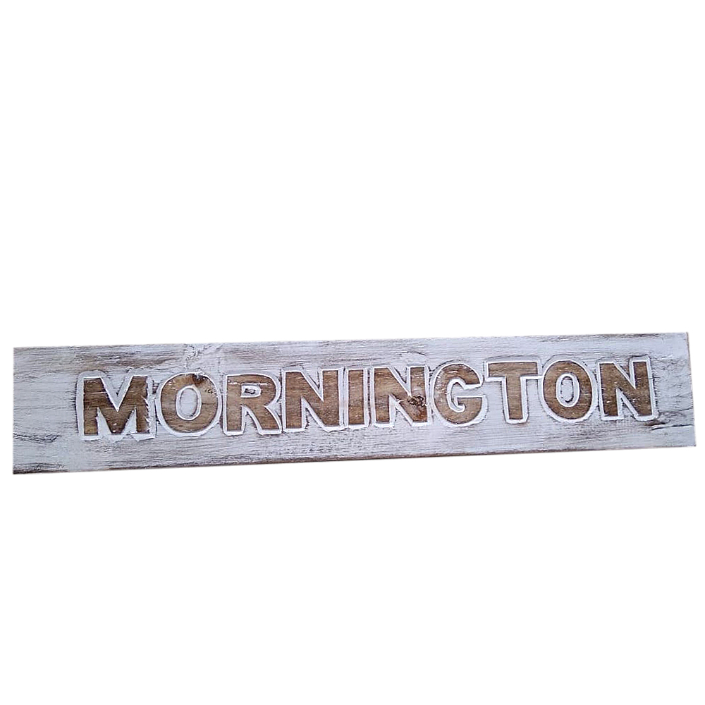 Dimensions in cm: 60x11x13 Colour: Whitewash/Natural Material: Wood Nominate your name (price will vary subject to size) This wood block will stand on table & has hooks to hang on wall On order for production