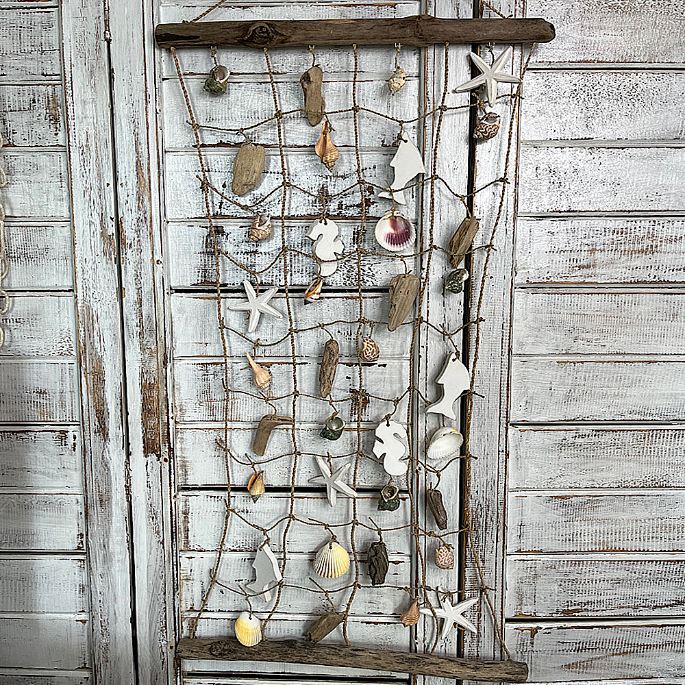 Price excludes GST Dimensions in cm: 100 x 40 Colour: White/Natural Material: Wood/Rope/Shell