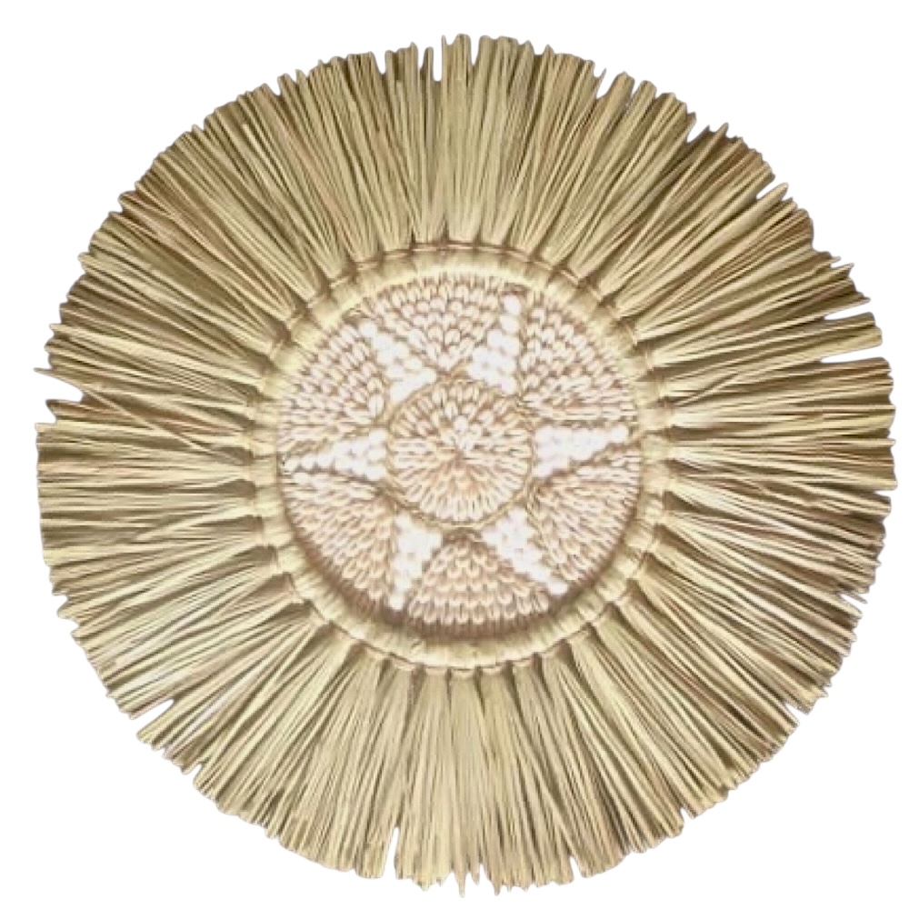 Price excludes GST Dimensions in cm: 40×40 Colour: Natural/White Material: Rattan/Shell