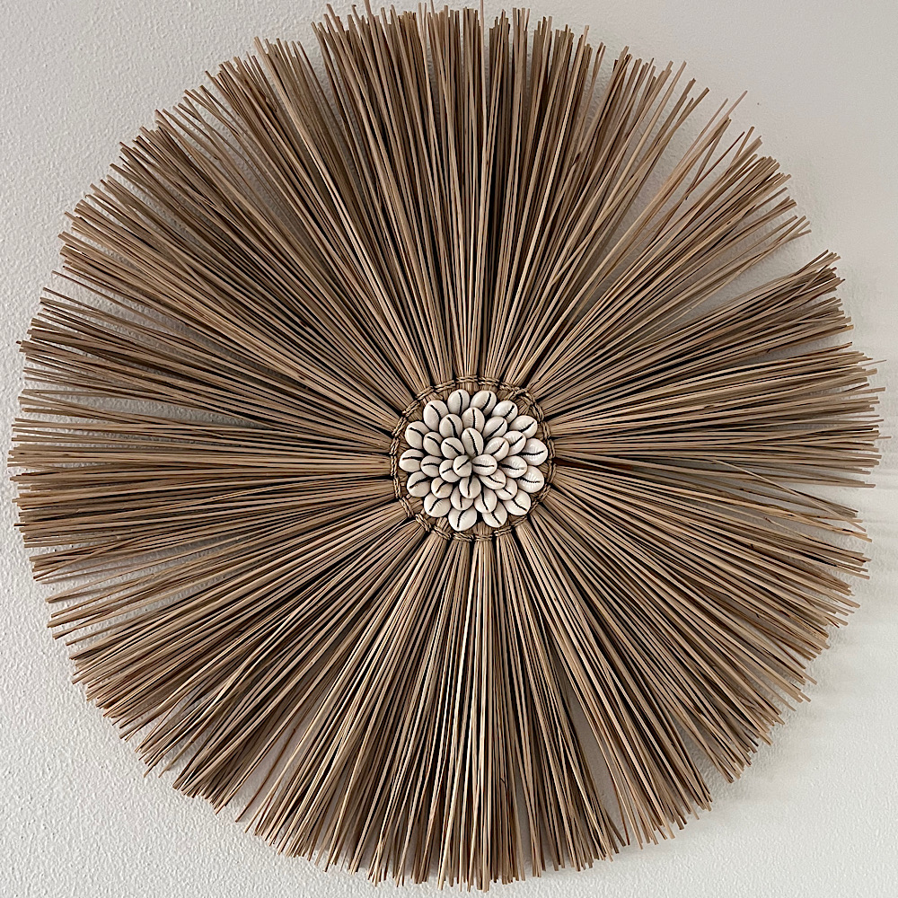 Price excludes GST Dimensions in cm: 50x 50 Colour: Natural/White Material: Rattan/Shell