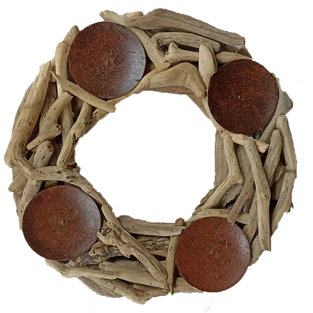 Price excludes GST Dimensions in cm: 40 x 40 Colour: Natural/Rust Material: Driftwood/MEtal