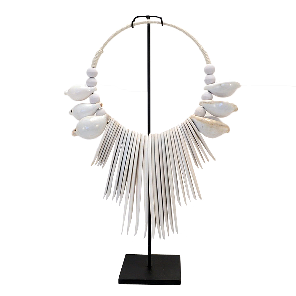 Price excludes GST Dimensions in cm: 42 x 23 Colour: White Material:Wood cuttle / Metal/Shell Stand included